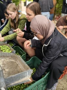 Tijdens We O'live hebben jongeren geleerd over hoe biologische olijven handmatig worden geplukt. Van de 10 dagen hebben we 2 dagen lang olijven geplukt waarmee ruim 25 kratten olijven zijn gevuld. Die olijven zijn weer gesorteerd met een machine die de olijven sorteert op grote, nadat deze ontdaan zijn van takken en bladeren. Daarna worden de "slechte" olijven handmatig er uit gepikt. De grote en zogezegde goede olijven die gaan naar de winkel en de andere olijven worden gebruikt om er olijfolie van te maken. Een heel interessante proces om te zien en mogen meemaken.